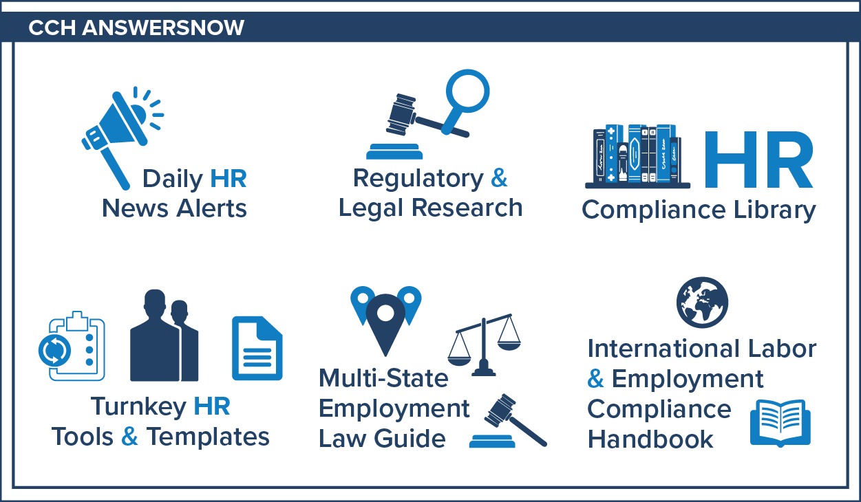 Improve your Human Resources consulting and stay ahead with federal, state, and international employment law updates, crucial in our increasingly globalized business world. With templates, training decks, and comprehensive databases, CCH AnswersNow ensures you're always compliant, minus the stress, effectively eliminating the daunting challenge of navigating the ever-shifting sands of legal regulations that impact your Human Resource department.